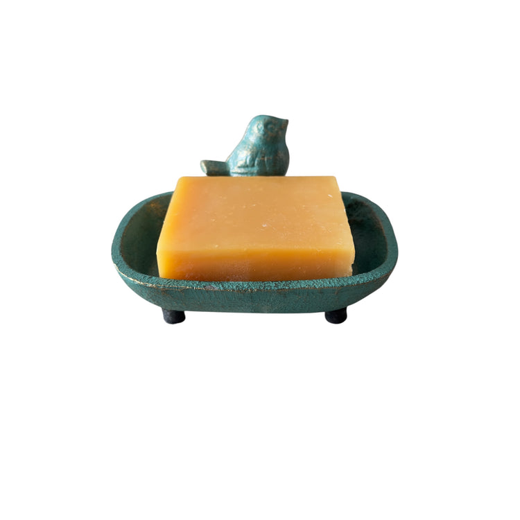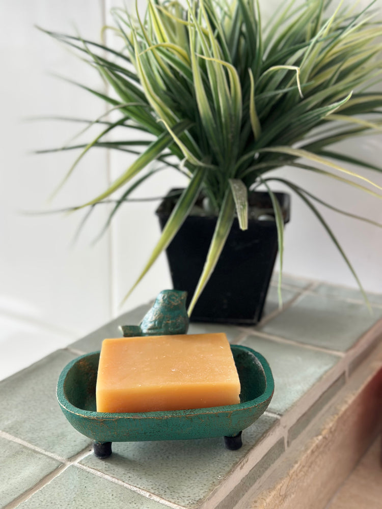 Esta jabonera de fierro fundido en tono verde menta combina la resistencia del metal con la suavidad de un color que inspira calma.