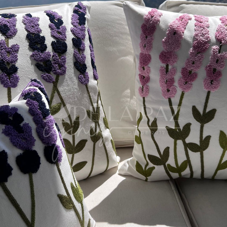 Funda de Cojín Bordada Lavanda Morada 20% Dcto.