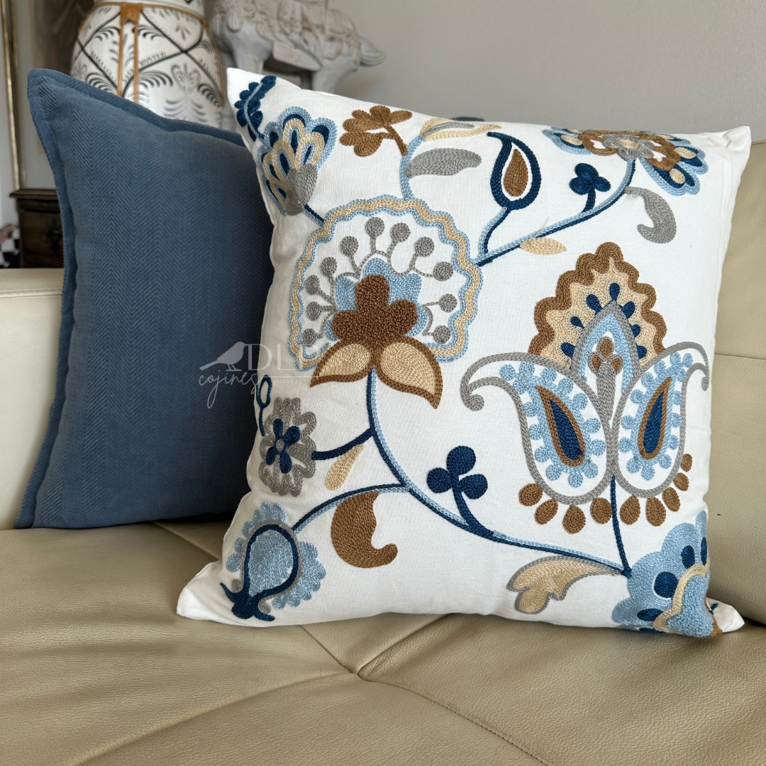 • Una funda bordada, que aporta color, textura y diseño.